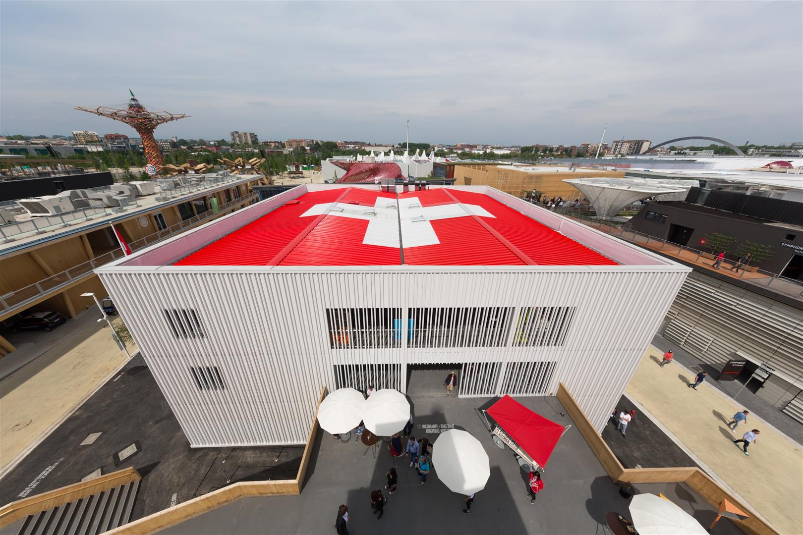 Der Schweizer Pavillon, der vom Architektenteam Netwerch entworfen wurde, umfasste neben einem Restaurant ein Take-away mit Schweizer Spezialitäten und Weinen, einen Ausstellungsbereich der Gotthard-Partnerkantone zum Thema Wasser, die Ausstellungen der Partnerstädte Basel, Genf und Zürich, eine interaktive Ausstellung von Nestlé zum Thema Wissenschaft, eine Installation für die neue Eisenbahn-Alpentransversale (NEAT), eine Installation von Schweiz Tourismus, einen Schokolade-Workshop und das interaktive Spiel «Pflanzendoktor», das von der Direktion für Entwicklung und Zusammenarbeit (DEZA) des Eidgenössischen Departements für auswärtige Angelegenheit (EDA) mitgetragen wurde.
