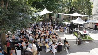 Ja, den Espace nonante-neuf! Wenn Sie sich für die Schweiz und ihre Fotografie interessieren, sollten Sie hierher kommen. Für das diesjährige Treffen in Arles haben wir uns etwas Besonderes einfallen lassen: Die Installation Bessere Welten in einem originellen Holzbau wurde gestaltet von der Fachhochschule für Fotografie in Vevey und dem Musée de l’Élysée in Lausanne. nonante-neuf Talks ist ein Ort für Geselligkeit und Austausch mitten im Cosmos-Arles Books. Hier organisiert die Schweizer Kulturstiftung Pro Helvetia eine Reihe von Vorträgen und Debatten.