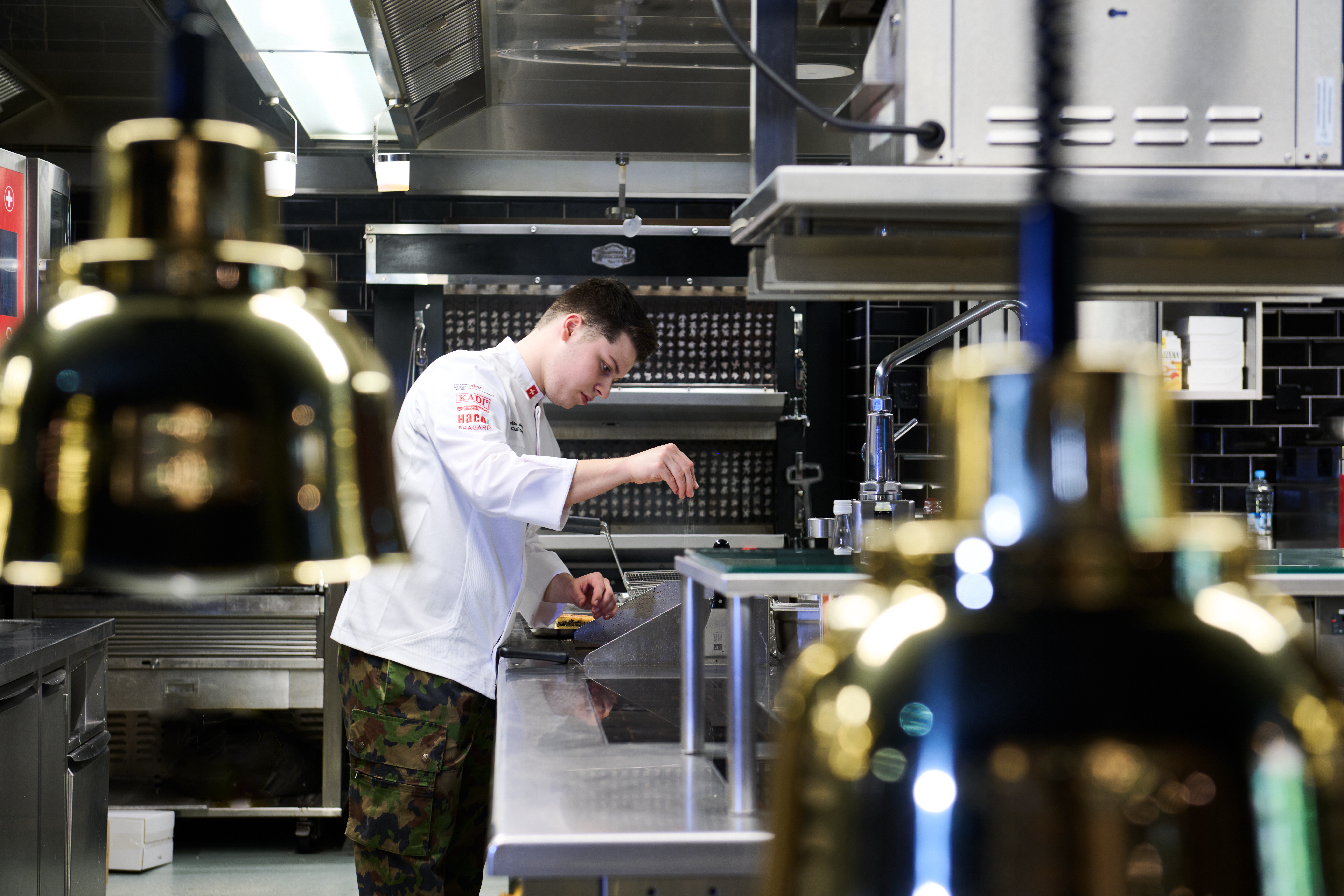 «Diese Zeit war sehr wertvoll für mich, um meinen Horizont zu erweitern», sagt Messerli, der während seiner Grundausbildung etwa Kurse zu Themen wie Messerschleifen, Sensorik oder Arbeitsorganisation für Wettbewerbe besuchen konnte. Am SACT schätzt er zudem den Wettkampfgedanken, die Kameradschaft und das Netzwerk: «Alle Teammitglieder hier kochen in angesehenen Betrieben. Wir können viel voneinander lernen.»