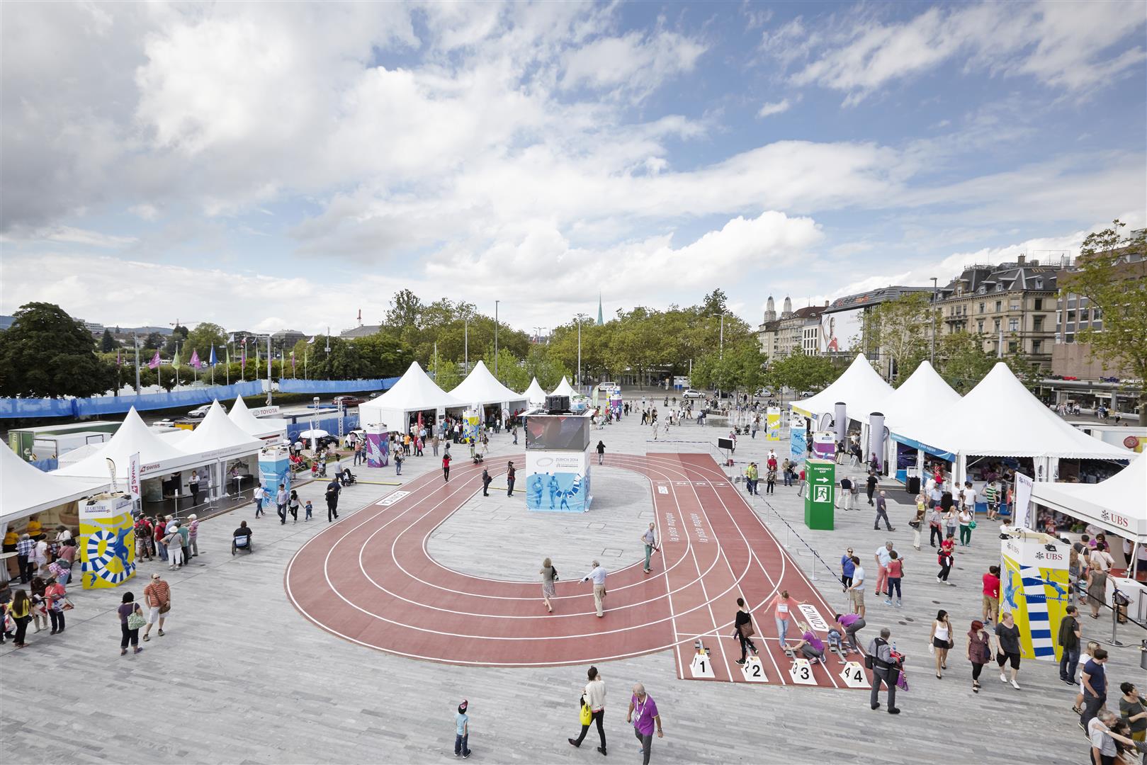 The first time the House of Switzerland appeared in Switzerland was at the 2014 European Athletics Championships in Zurich, transforming the new Sechseläuten-Platz into an attractive and dynamic meeting point for the duration of the championships.