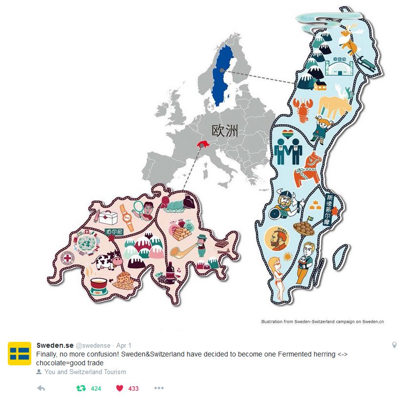 «Pourquoi n'êtes-vous pas blond?», ou encore «J'ai fait une croisière et je suis passé par la Suisse» sont des remarques que les Suisses entendent régulièrement! Mais pourquoi est-ce que la Suisse et la Suède sont si souvent confondus? Sûrement en raison de noms similaires et de leur proximité géographique (lorsqu'on se situe hors d'Europe). À ce propos, aviez-vous entendu parler du poisson d'avril 2016 du gouvernement suèdois?