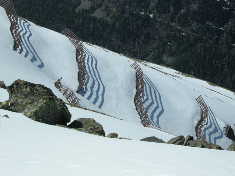 Différentes structures de protection ont pour mission d’empêcher le déclenchement d’avalanches et de protéger les zones dans la vallée des coulées de neige. Il s’agit le plus souvent d’ouvrages de retenue qui stabilisent le manteau neigeux par des dispositifs ancrés dans le sol. Ils protègent ainsi les zones en aval sur de grandes surfaces. Après l’hiver 1950/51, les anciens ouvrages de retenue ont été remplacés par des constructions plus efficaces en acier, aluminium, bois, câbles métalliques ou béton en différents endroits. En Suisse, quelque 500 km d’ouvrages de retenue sont recensés.