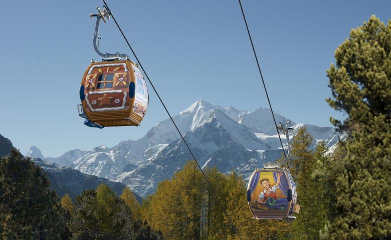 Il était une fois... un petit village niché au cœur des montagnes valaisannes. La Suisse telle qu'on se l’imagine: des pâturages verdoyants, des vaches ruminant placidement, un cirque montagneux d’une beauté à couper le souffle et des chalets pittoresques. Mais ce lieu recèle un secret : en catimini, de petites cabines partent du centre de Grächen pour grimper jusqu'à l’Hannigalp. Rien de particulier à ce qu'il semble, à ceci près que chacune d'elles est dédiée à un conte. Ainsi, les visiteurs font le trajet en compagnie du Petit chaperon rouge ou du Vaillant petit tailleur: l’extérieur est décoré de motifs faisant référence au conte et à l’intérieur, la voix de la comédienne Silvia Jost narre le récit durant le trajet. Une féérie pour petits et grands.