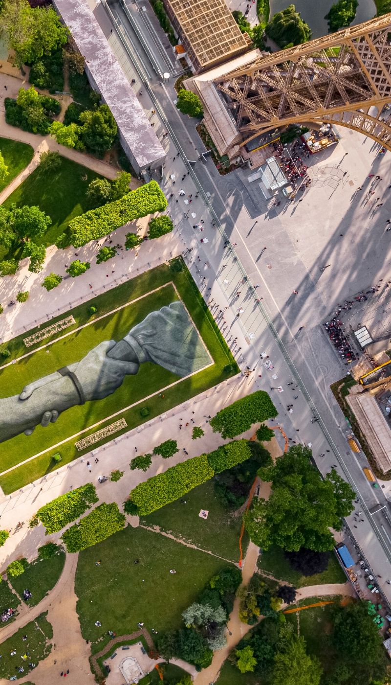 L’été 2019 marque le point de départ de « Beyond Walls », un projet d’une ampleur que Saype n’a pas lui-même imaginé. Il convainc la mairie de Paris de réaliser au pied de la tour Eiffel une fresque forte, portant un message de solidarité. « J’avais l’idée de mains entrelacées et de créer un symbole fort d’entraide », dit-il. A mesure que le projet parisien se concrétise, l’artiste ressent le besoin de répéter la performance dans d’autres villes. « En réfléchissant je me suis dit on doit faire le tour du monde avec cette chaîne. […] C’est clair, je ne me suis pas rendu compte du chantier que cela allait être, mais c’est cool ! Si tu réfléchis trop, tu ne le fais pas ! » raconte-t-il avec un enthousiasme communicatif. Saype entame alors la création de la plus grande chaîne humaine au monde à Paris.