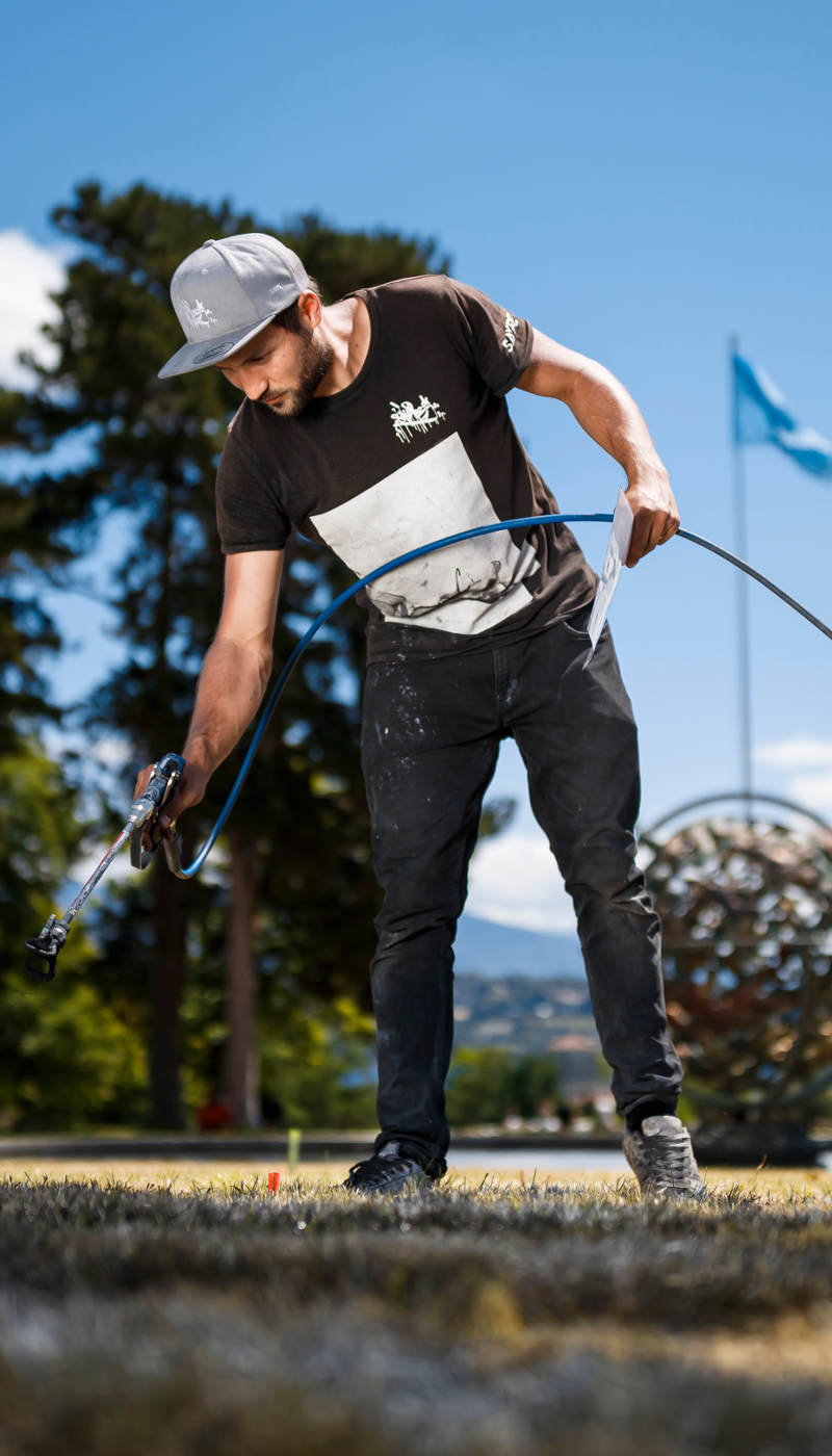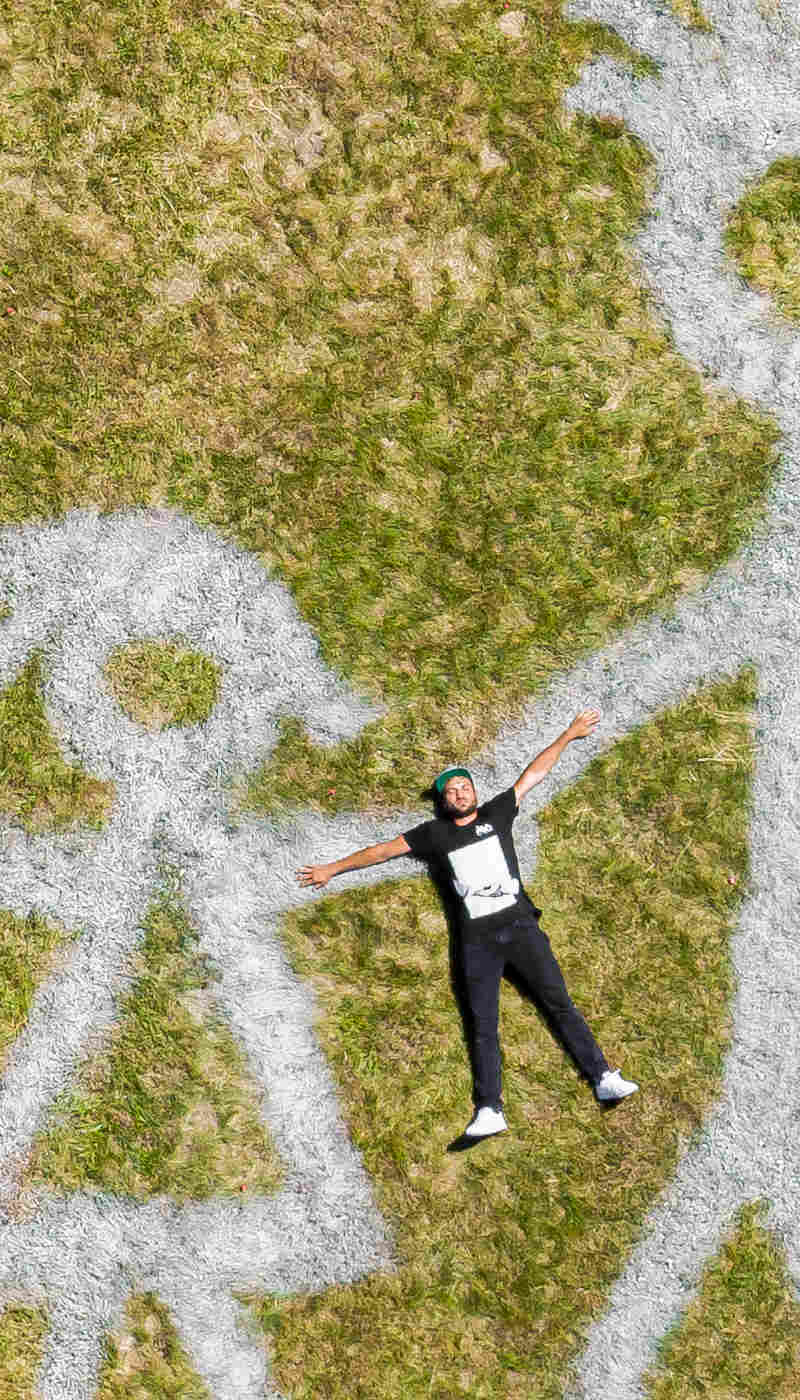 Le plus suisse des graffeurs français, Saype, porte un message à la fois humaniste et écologique. À travers son œuvre, il souhaite « impacter les gens, sans impacter la nature ».