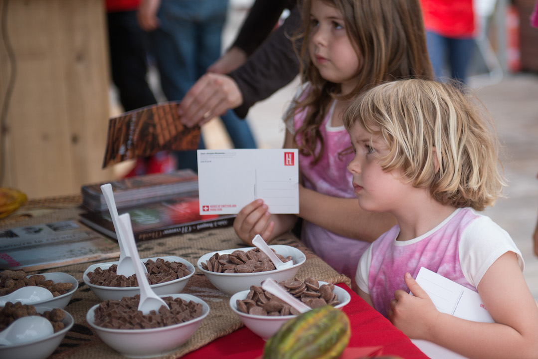 The second part of the workshop will take place at a stand with activities and tastings, with the question: "What do you think is the real taste of Swiss chocolate?" You will have to taste two different types of Swiss milk chocolate and identify which one of them has the 'real' Swiss flavour.