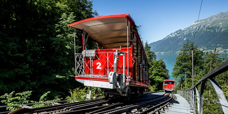 Chi sale sulla più vecchia funicolare svizzera (1879) per raggiungere le cascate di Giessbach sulle rive del lago di Brienz viaggia senza l’ausilio di un motore: ancora oggi l’unica fonte di propulsione è quella fornita dalla forza di gravità sfruttata mediante una zavorra (d’acqua) che spinge verso l’alto uno dei vagoni mentre l’altro scende. Nel 2015 il sistema di scambio automatizzato – il primo al mondo di questo genere – che permette il viaggio contemporaneo in salita e in discesa e l’incrocio sicuro dei due vagoni, è stato definito «Historic Mechanical Engineering Landmark» dall’American Society of Mechanical Engineers (ASME).