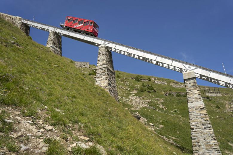 No, non è un ottovolante in un parco di divertimenti, ma la funicolare dell’Haslital, aperta nel 1926, che porta sul Grimselpass a un’altitudine di 1859 metri sul livello del mare. La pendenza – che tocca il 106 per cento – e i vagoni aperti rendono questa funicolare, la più ripida d’Europa, unica nel suo genere.