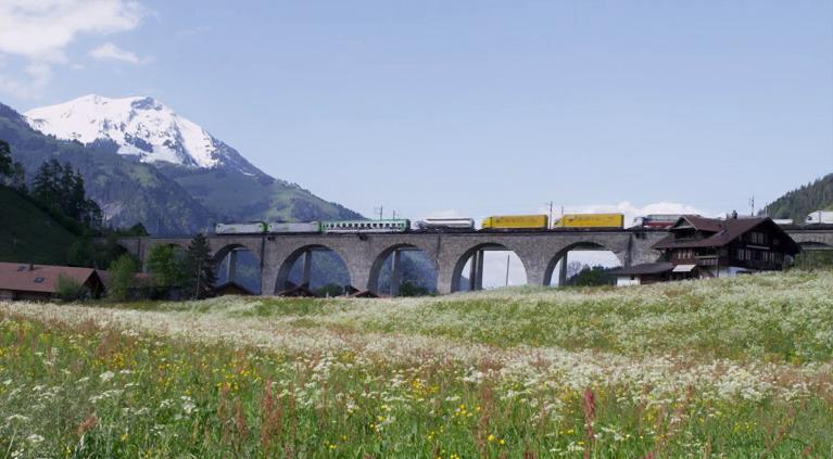 Asse di transito nord-sud e contemporaneamente territorio montuoso, questi due elementi fanno sì che per la Svizzera il traffico pesante costituisca una notevole sfida. L’iniziativa delle Alpi, accettata nel 1994, ha portato a un continuo aumento dell’offerta per il trasferimento del traffico merci dalla strada alla ferrovia. Oggi non vengono caricati sul treno solo container, l’attuale «autostrada viaggiante» può trasportare da un capo all’altro della Svizzera durante il weekend (quando i camion non possono viaggiare) mezzi pesanti da 44 tonnellate, mentre gli autisti dormono per nove ore rispettando così il periodo di riposo fissato per legge. Nel 2015 oltre 100 000 camion hanno attraversato le Alpi sull’asse Lötschberg-Sempione utilizzando l’autostrada viaggiante, la cosiddetta Rola. Nel 2013, 140,6 milioni di tonnellate (nette) di merci sono passate per la regione alpina, 47,5 milioni su rotaia, e la tendenza è in aumento.