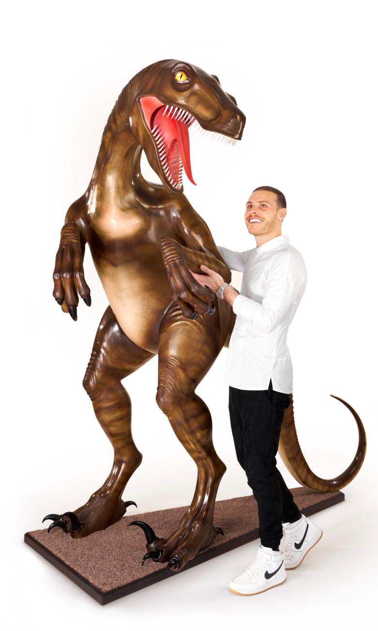 @amauryguichon Chocolate Velociraptor! 🦖 This 100% Chocolate sculpture is my biggest one yet, weighing 550lbs and stands 8ft tall. #amauryguichon #chocolate #raptor ♬ Flow - Jeff Kaale