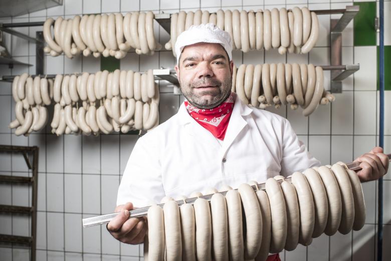 Nel Cantone di Glarona la macelleria Kern è un’istituzione che esiste da oltre 100 anni! La tradizione di famiglia è tramandata da quattro generazioni e oggi è rappresentata da Urs e Dunja Kern-Enzler. Una delle loro specialità è il Glarner Kalbsbratwurst, insignito del riconoscimento IGP. Questa salsiccia da arrostire, tipica del Cantone, è prodotta con carne di vitello e di maiale con l’aggiunta di latte. Segno particolare: è l’unica salsiccia svizzera che contiene pane bianco, in virtù della concessione di una deroga speciale. La sua Indicazione Geografica Protetta garantisce la provenienza svizzera della carne e la produzione nel Cantone di Glarona. La famiglia Kern si presenta davanti alla giuria del concorso con questo prodotto. «È una salsiccia che vanta un forte carattere regionale e una lunga storia» spiega Urs Kern, che segue fedelmente la ricetta del bisnonno e spera di far conoscere anche ai romandi questa salsiccia tipica. Le altre specialità della macelleria – tutte rigorosamente regionali – sono il salame glaronese, il Glarner Schüblig e il Rauchcervelat.
