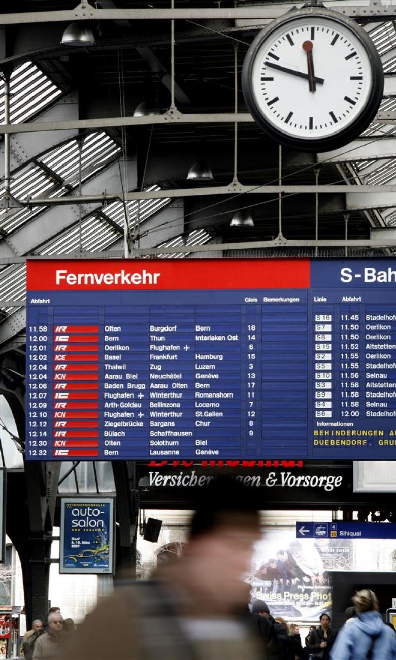 Swiss trains are punctual – you will almost never have to wait for your connection. This is due to Switzerland's clock-face timetable: during the day at least one train per hour leaves every station in at least one direction. Zurich is at the heart of this strictly timed rail network, with trains arriving just before the hour at the central station and leaving it just after the hour. Behind the clock-face timetable is the Spinner Club which successfully fended off competition from road traffic: while the number of passengers fell to 216 million from 1970 to 1980, after the introduction of the clock-face timetable it increased to 264 million by 1990 and 430 million by 2014.
