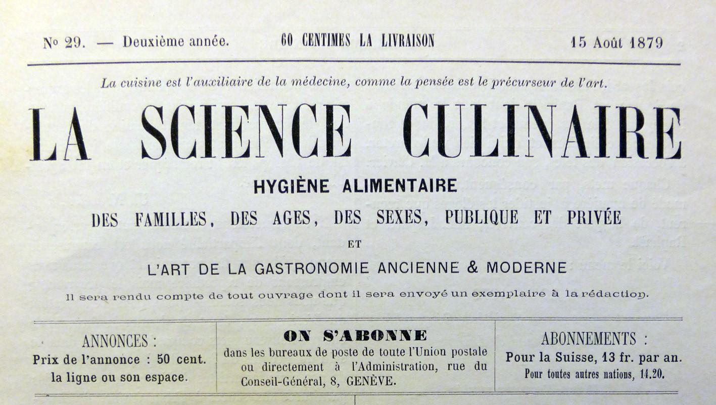 Journal La Science culinaire and first writings on ‘la cuisine hygiénique’