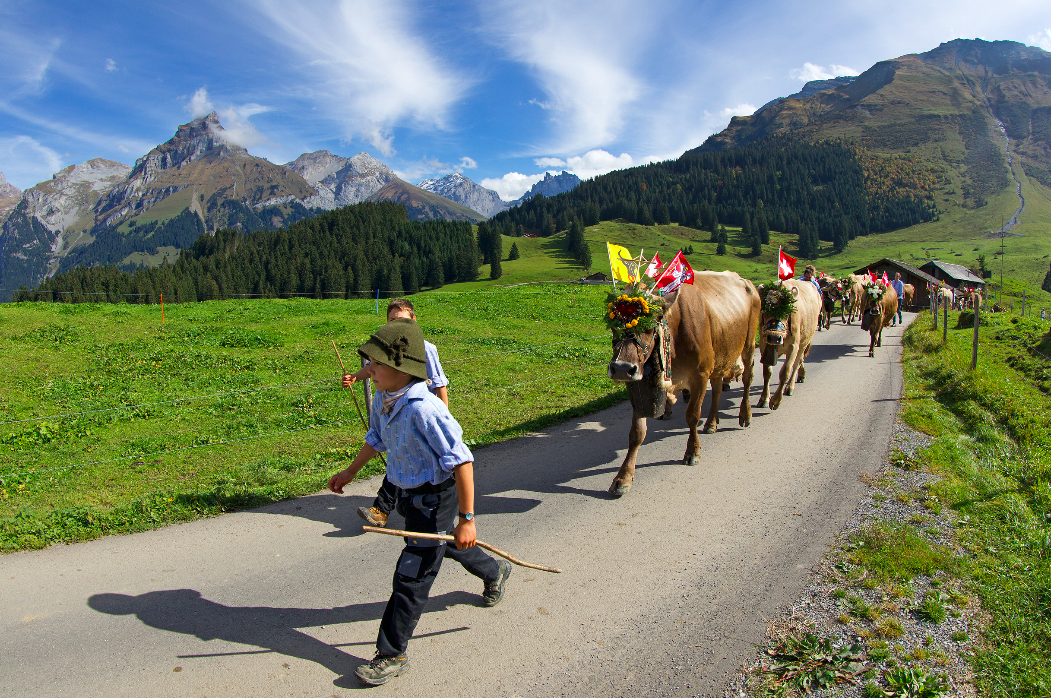 Between mid-September and mid-October, beautifully adorned cattle descend from the Alpine pastures of Engelberg, their bells ringing in concert. The Désalpe is a great way to start the autumn season, and the festivities continue with two major events – the Engelberg livestock fair and an open-air mass.