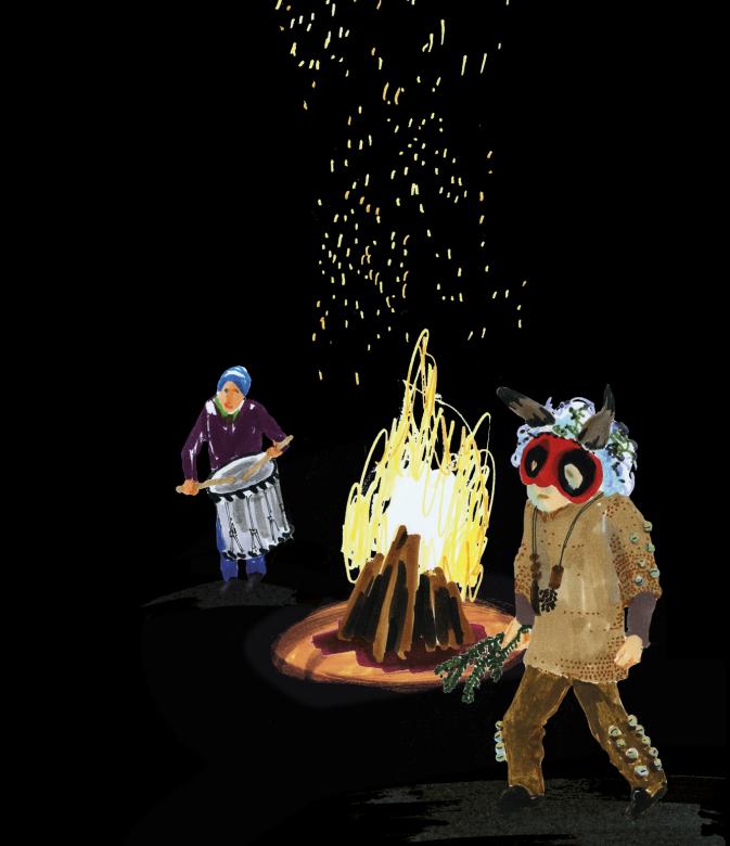Is it possible that frightfully terrifying creatures can drive away even worse demons? Yes – it is, and that’s exactly what the bonfire tradition in St Gallen is all about. There’s a legend about the cruel Knight Rappenstein, who was so evil that he was cursed and banned to a canyon down deep in the earth for all time. It’s only on New Year’s Eve that he can escape. But as he rides his white horse through town, the bonfire builders are ready for him. They make a horrendous ruckus with ratchets and bells. They sing songs to cast spells and dance around their fire with dreadful masks made of animal bones and teeth. And they burn an uglyscarecrow made to look like the cruel Knight Rappenstein. That’s how they send the monster back to his chasm – at least for another year. . . .