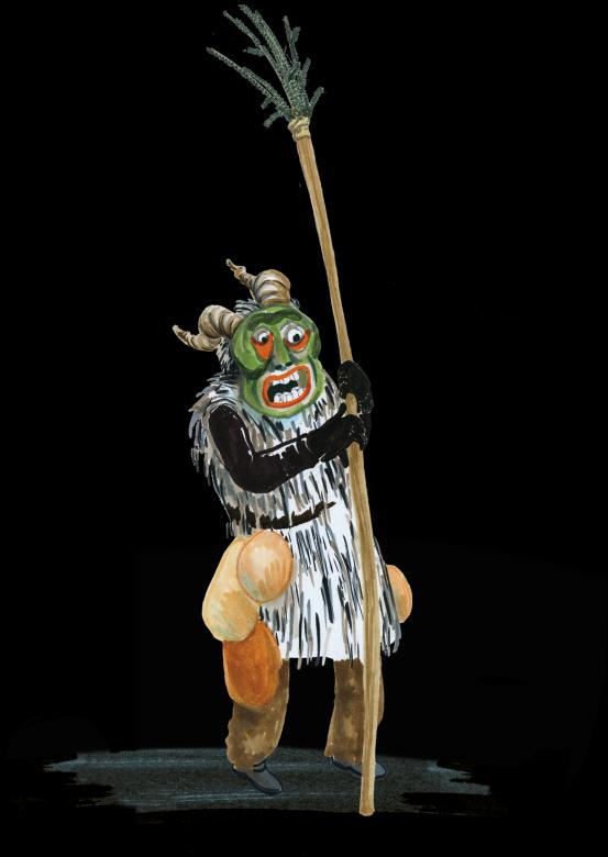 “They’re coming! They’re coming!” A group of rough characters is hurtling down the hill from the castle into the village. There’s a leader with twelve ‘broom men’, and their costumes are enough to frighten the bravest soul. They’re wearing scary wooden masks and carrying long, spindly brooms of juniper. Pig bladders hang like weird balloons on their belts. Behind them, bell-ringers are making a deafening noise. When the men arrive in the village, they form a circle. Slowly, they lower their brooms and drive them into the crowd of onlookers – this frightens away evil spirits. Juniper is an ancient medicine, and in the mountains, people still burn juniper as a type of incense to ward off evil spirits in their homes and barns.