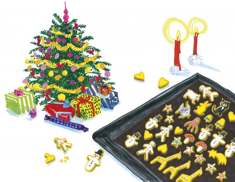 St Nicholas is celebrated very differently all over the world. In the United States, he brings presents on Christmas Eve, but in Switzerland, he visits children on the sixth of December. Sometimes he’s a jolly man with a big belly and rosy cheeks, and sometimes he’s very strict and will scold naughty children—if they haven’t brushed their teeth properly, for example. But he always wears a red coat and has a flowing white beard. Swiss children memorise little verses and recite them when St Nicholas comes to visit. In return, he gives them oranges, chocolate, nuts, and some sweet gingerbread.